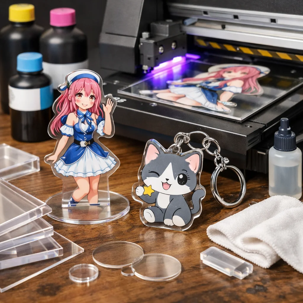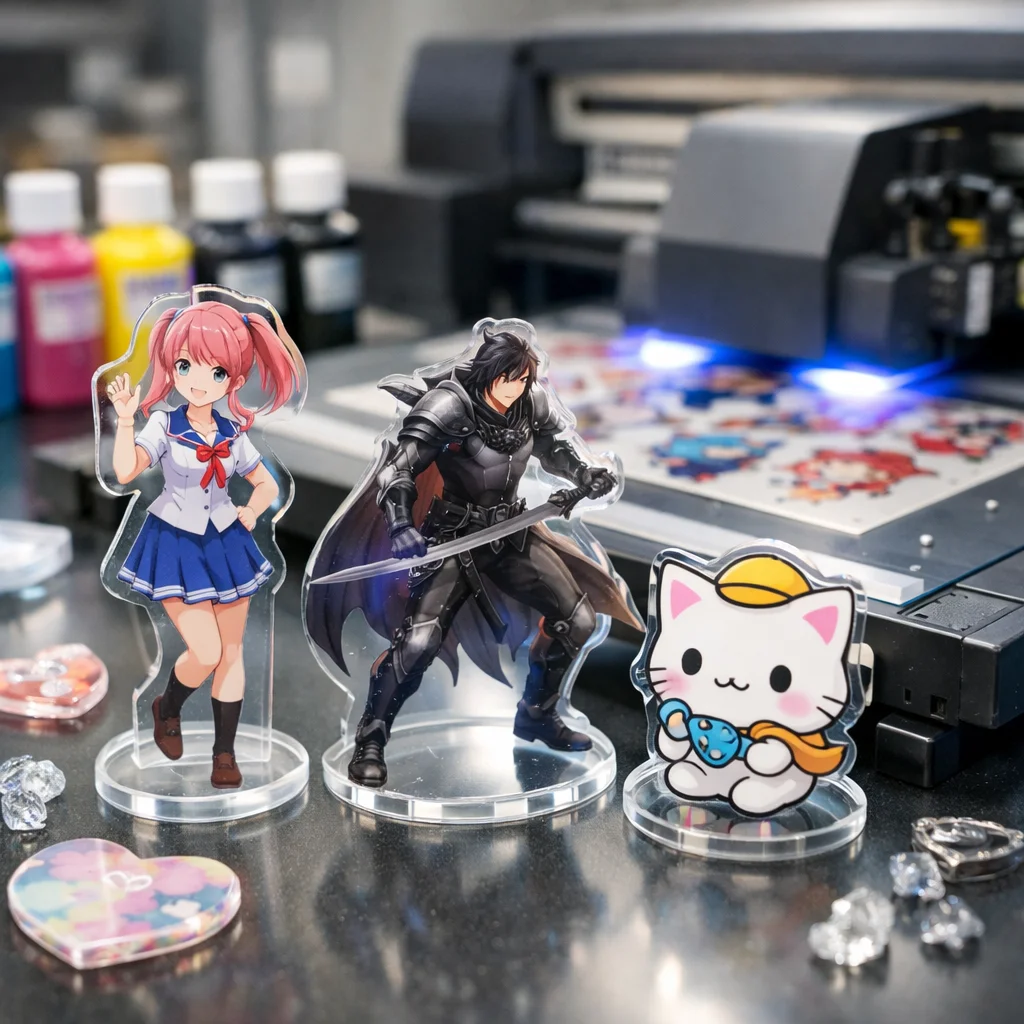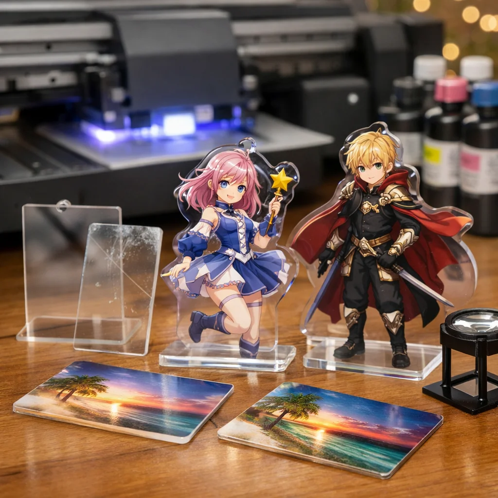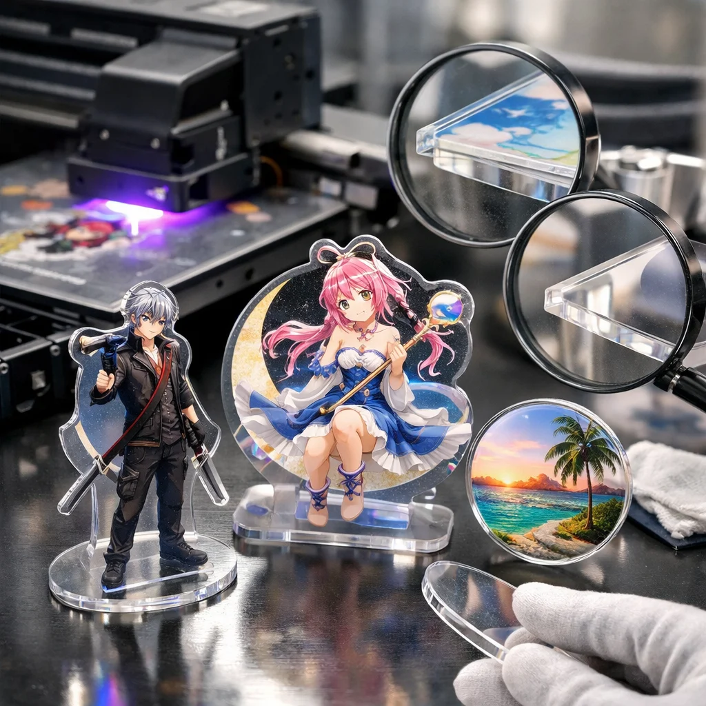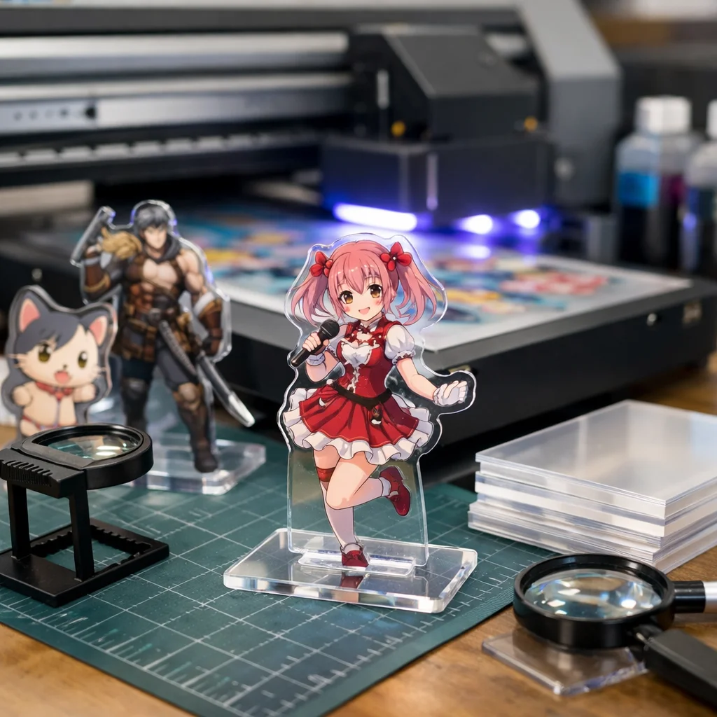 UV印刷を利用した新しいデザインアイデアを提案しました。アクリルキーホルダー、スタンド、プレートの各カテゴリで、白版やクリア盛り、多層などの技術を活かし、注意点を明確にしました。質の高いアクリルグッズ製作には、デザインの精度が重要です。