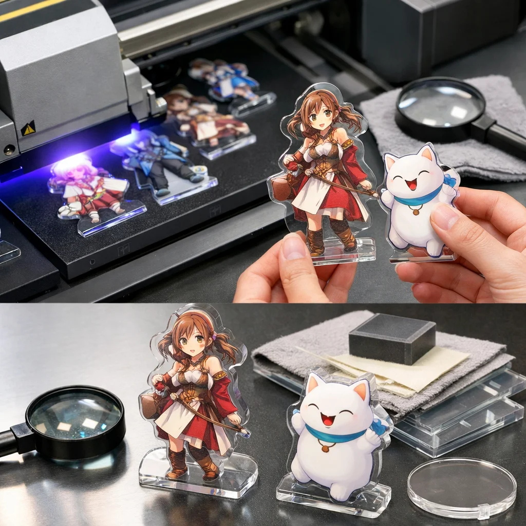 高品質なアクリルグッズを製作するためには、入稿前、製造前、製造後のチェックリストを活用し、UV印刷のデメリットを回避することが重要です。