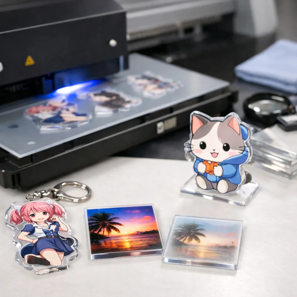 総合的にみると、UV印刷はアクリルグッズ制作において多くの利点を提供していますが、同時に考慮すべきデメリットも存在します。自分のプロジェクトやビジネスに合わせて、最適な技術を選ぶことが、成功へと繋がるのです。