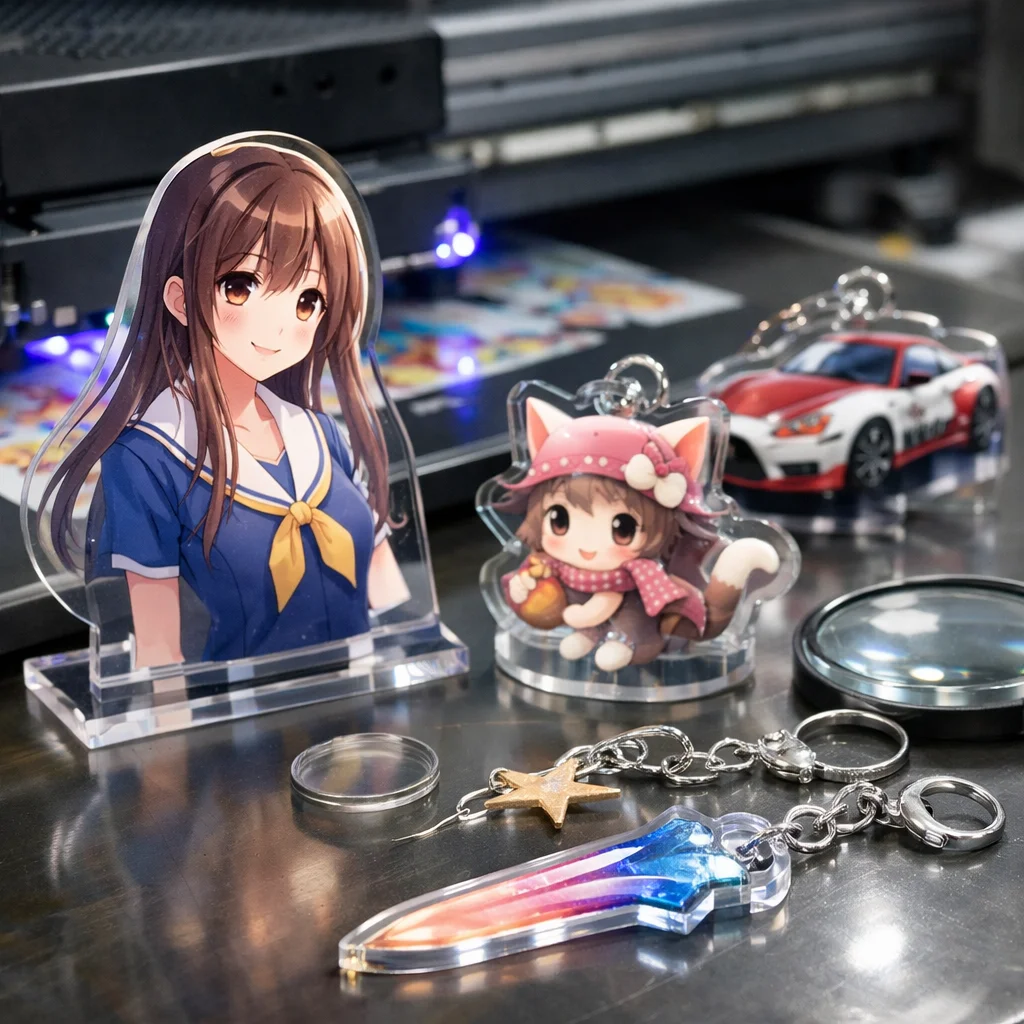 最終的には、各アイデアに合わせて印刷レイヤーの設定を行い、綿密な計画をもって製作を遂行することで、高品質なアクリルグッズを実現できます。UV印刷の技術を活用し、他にはない魅力的なアクリルグッズを生み出すチャンスを逃さないようにしましょう。