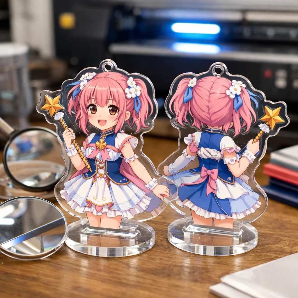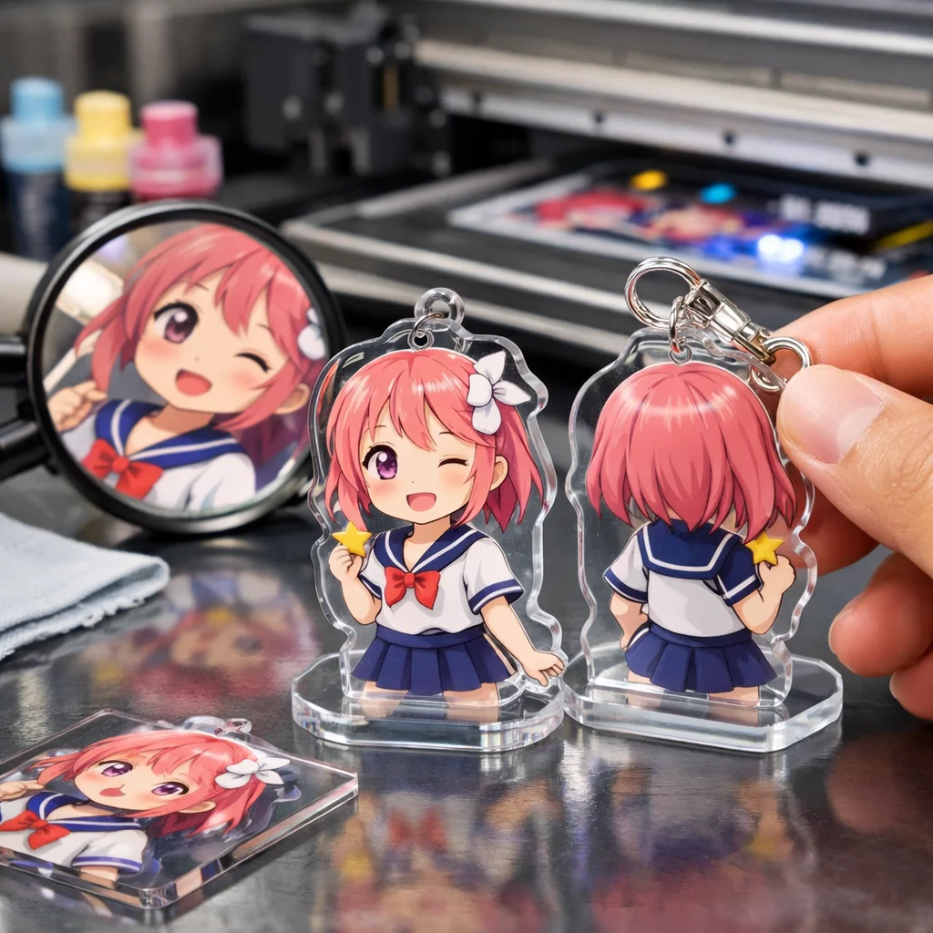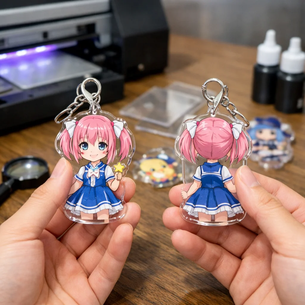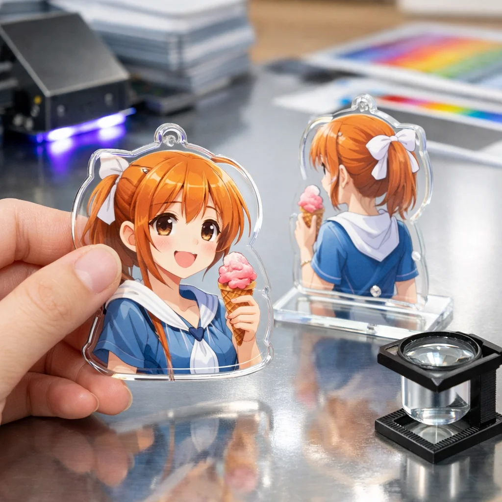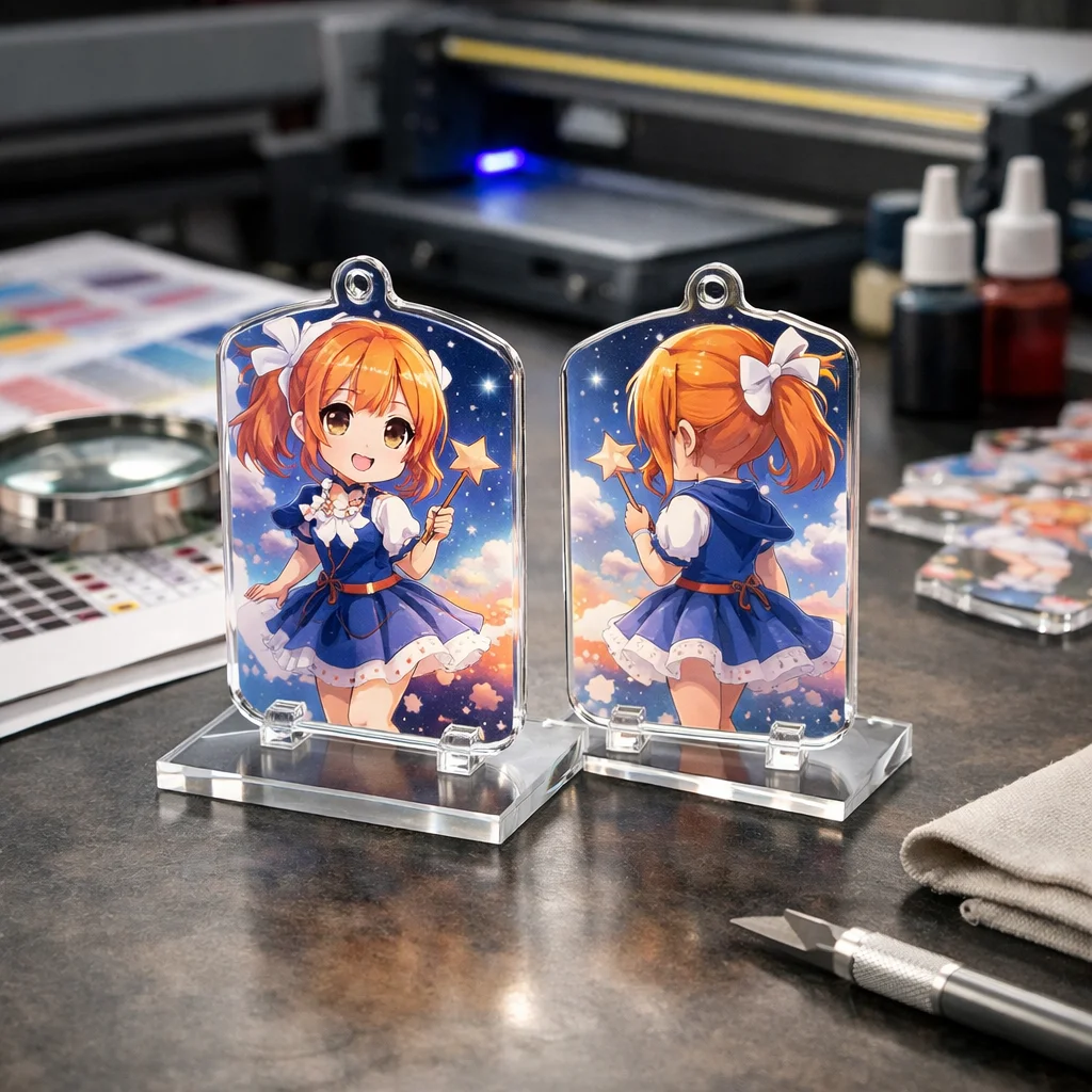 アクリルグッズの制作において、両面印刷はデザインの幅を広げ、製品の魅力を高める重要な技術です。両面印刷とは、アクリルグッズの両面に印刷を施すことで、視覚的な効果やデザインの多様性を実現する方法です。これにより、アクリルグッズはより立体的で印象的な仕上がりとなります。