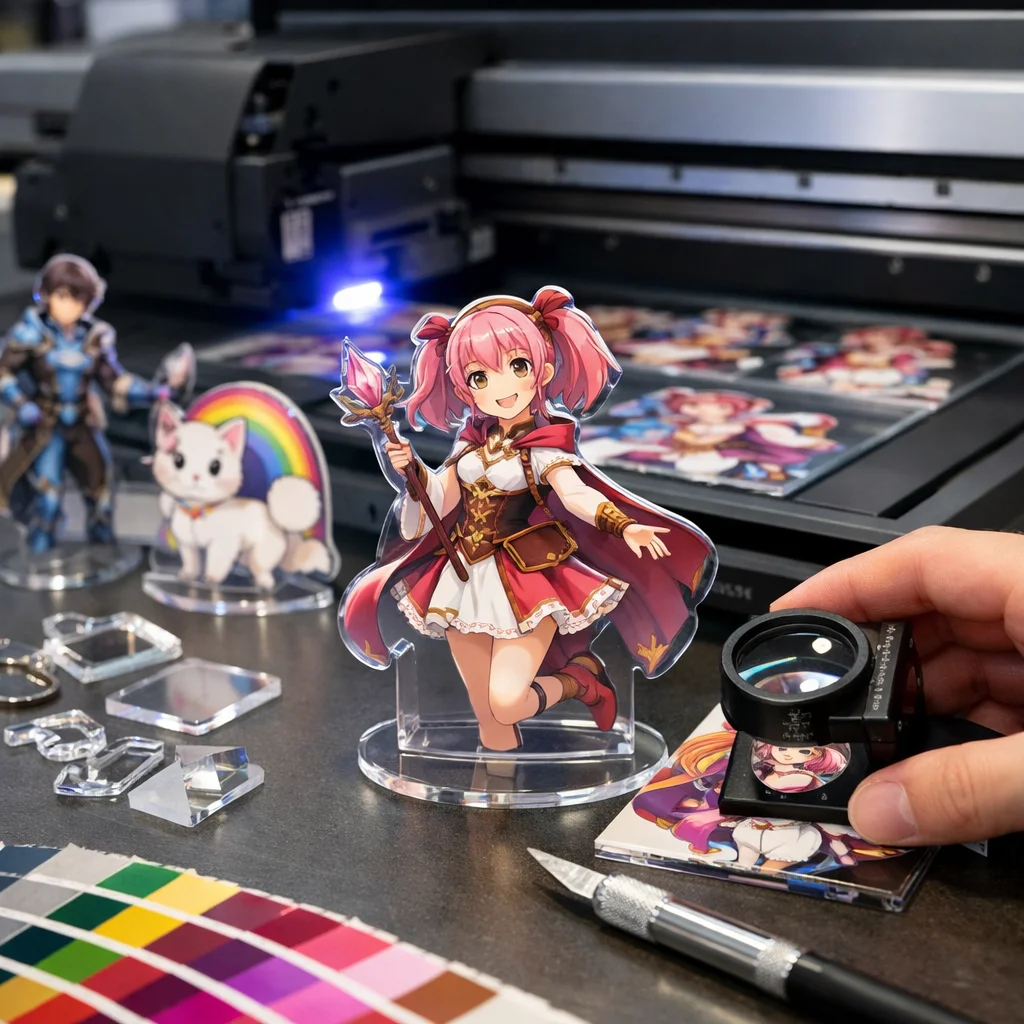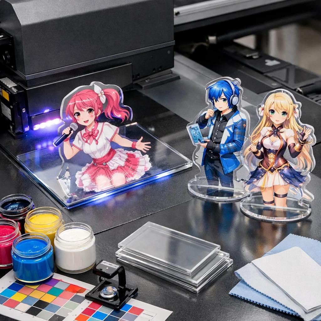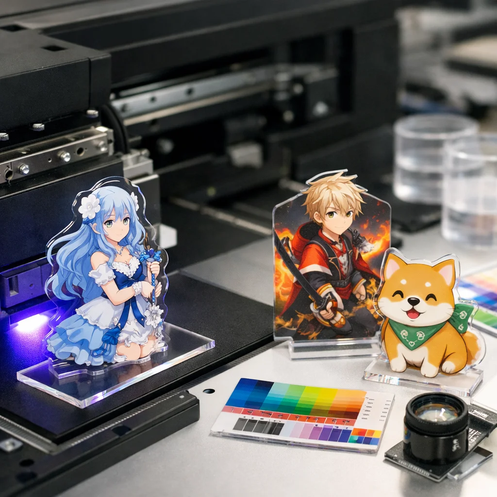 アクリルグッズの製作において、UV印刷技術は高品質な仕上がりを実現するための重要な手法です。以下に、UV印刷を活用した成功事例を3つご紹介します。