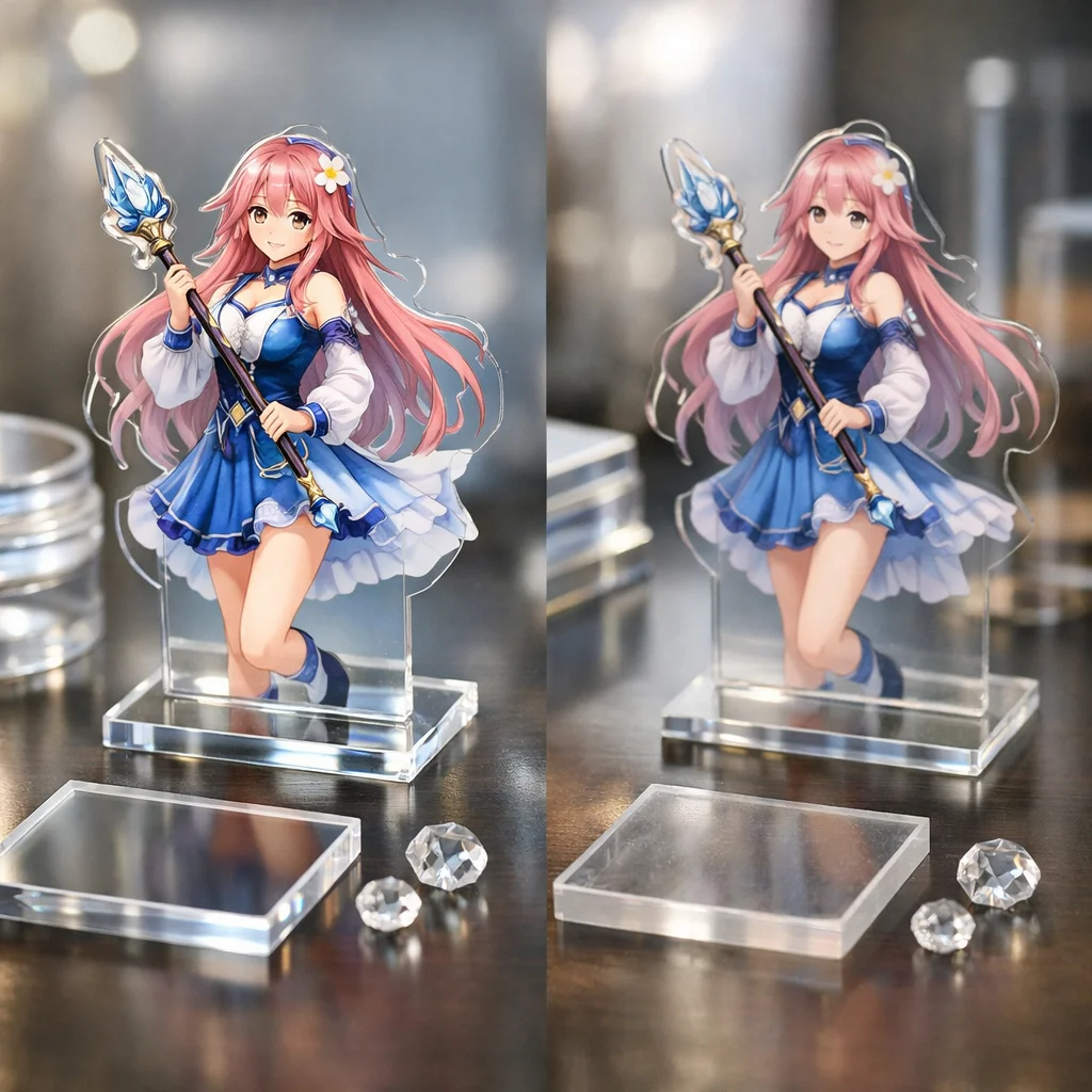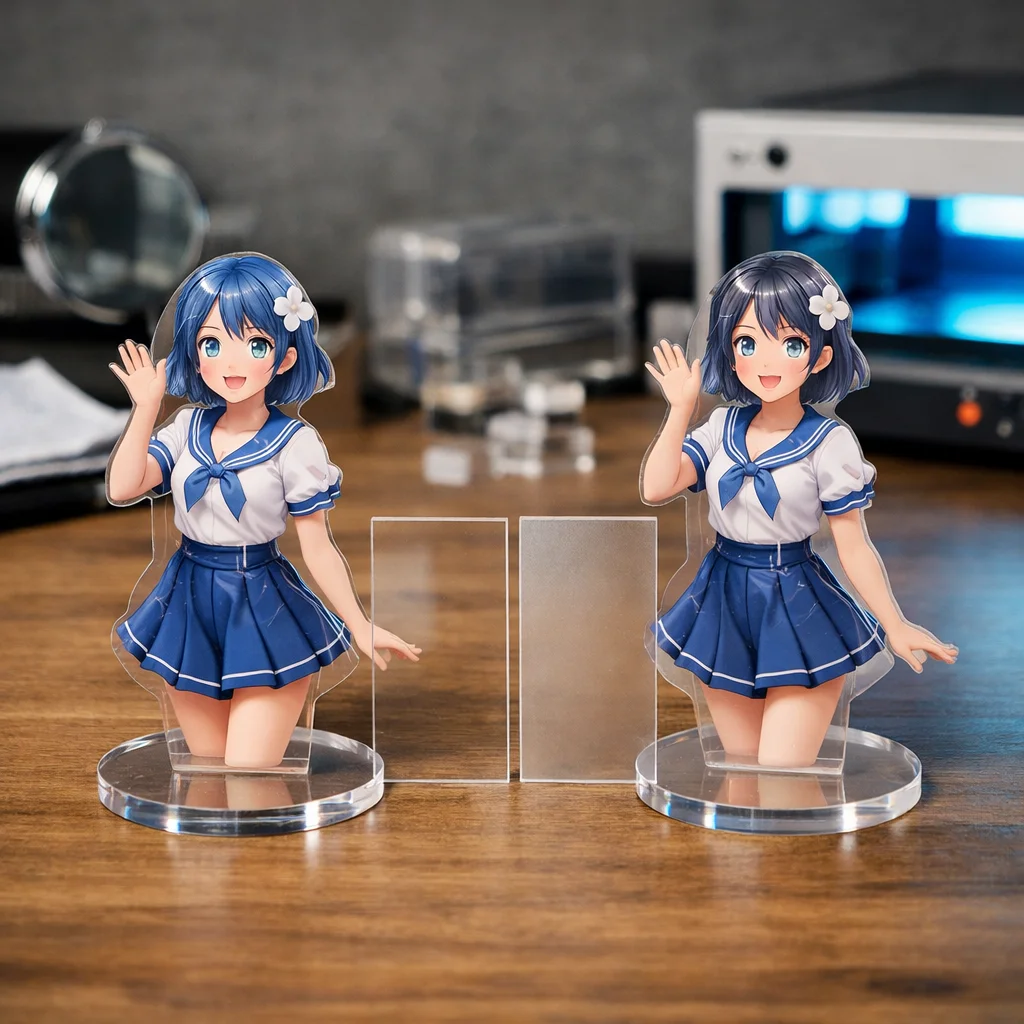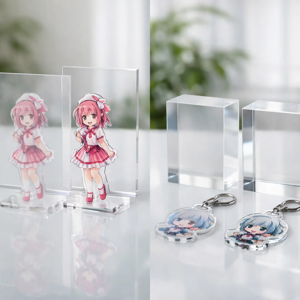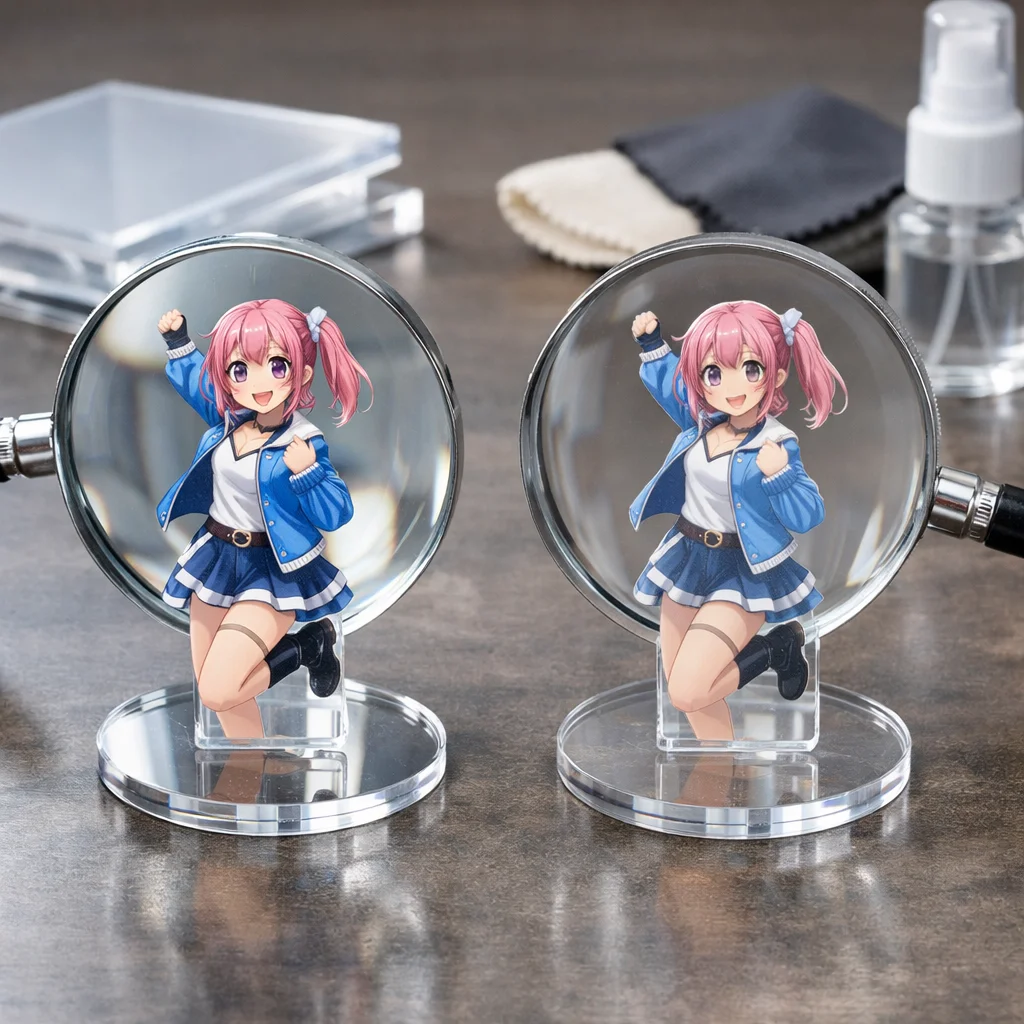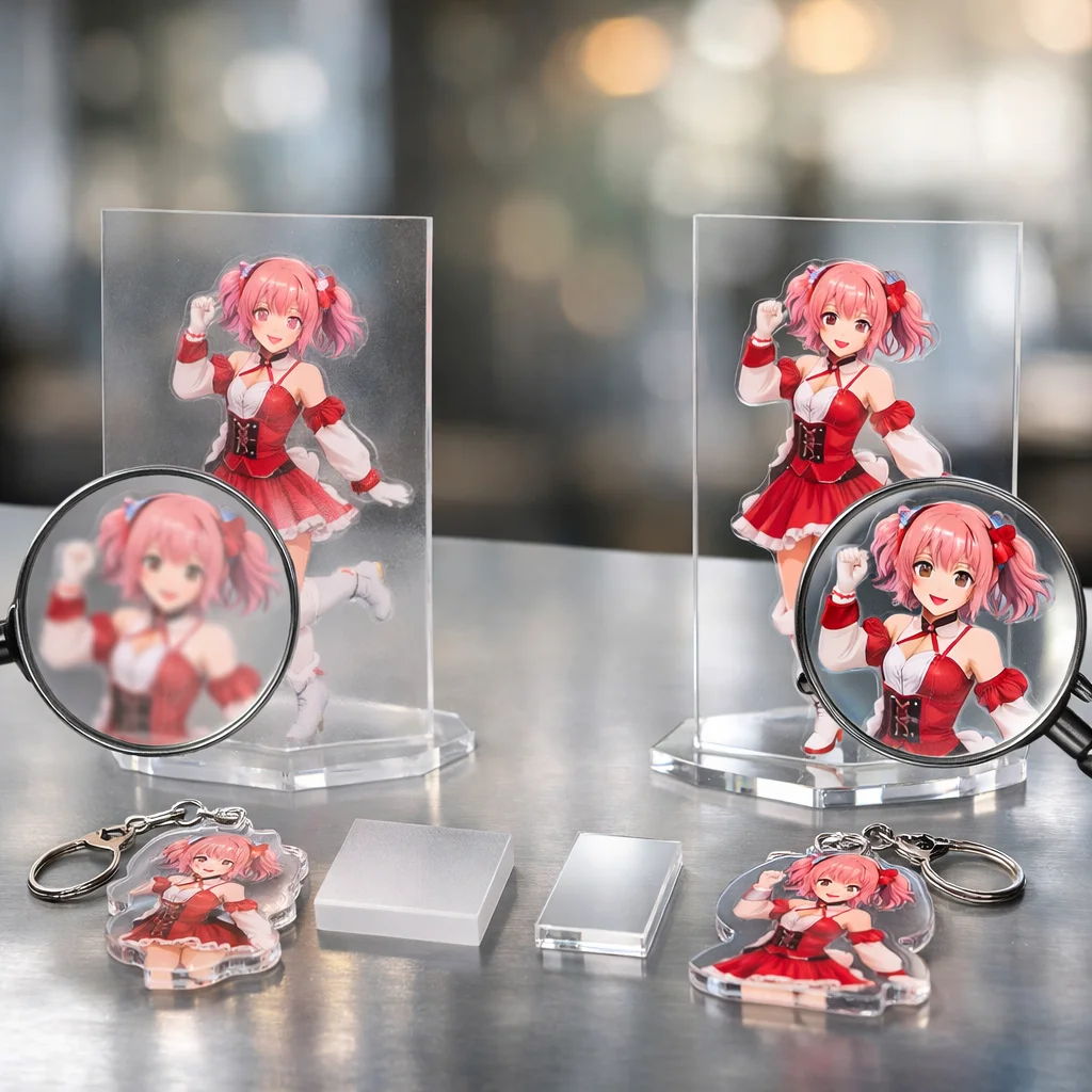 アクリルグッズを選ぶ際には、これらの技術比較を考慮することで、あなたの求める理想のアイテムが見つかるはずです。クリアなアクリルの特性を最大限に活かした製品を通じて、より多くの人々に感動を与えられることでしょう。