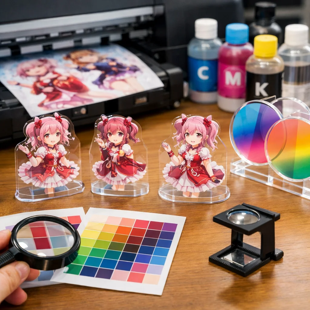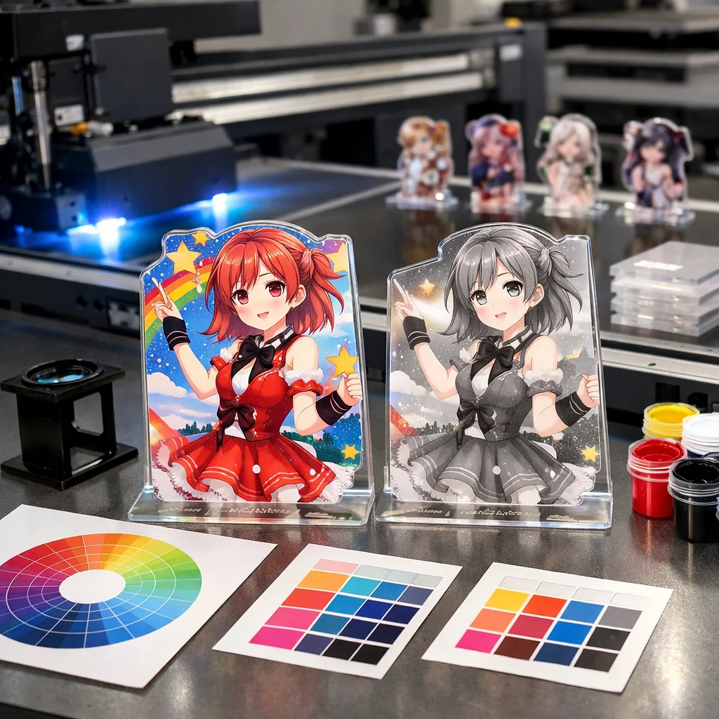 アクリルグッズの製造において、色味の再現は製品の品質、顧客満足度、リピート率、そしてブランド信頼に直結する重要な要素です。特に、アクリルグッズはその透明性と光沢感から、色彩の正確な再現が求められます。