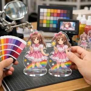 アクリルグッズの製作において、色味調整の技術は製品の品質と魅力を大きく左右します。以下に、よくある3つの事例を通じて、色味調整の技術とその重要性を具体的に解説します。