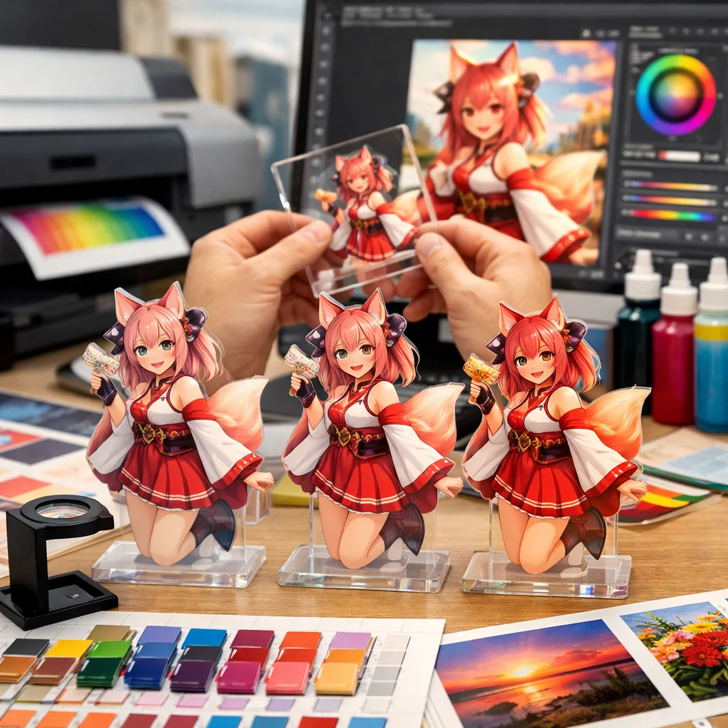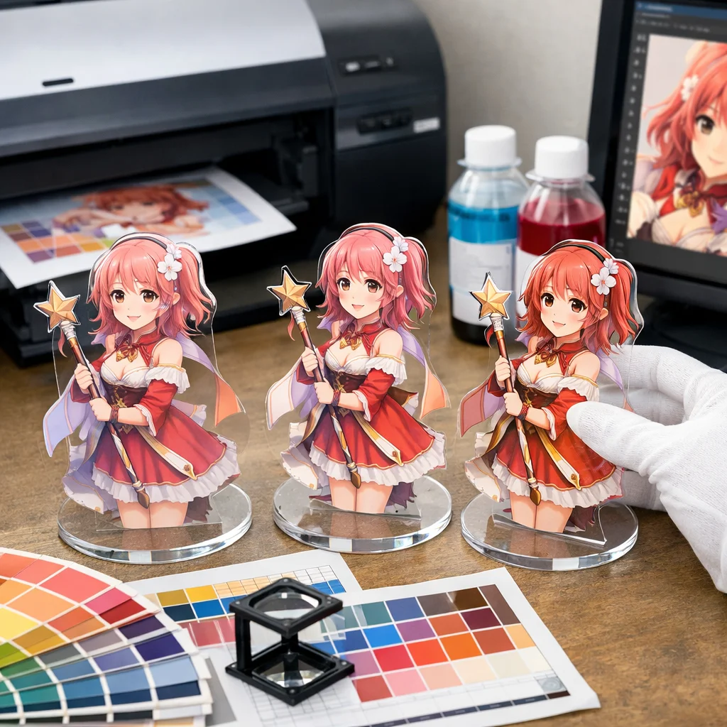 2. 一貫性: 同一デザインのアクリルグッズを複数製作する際、各製品で色味が均一であること。