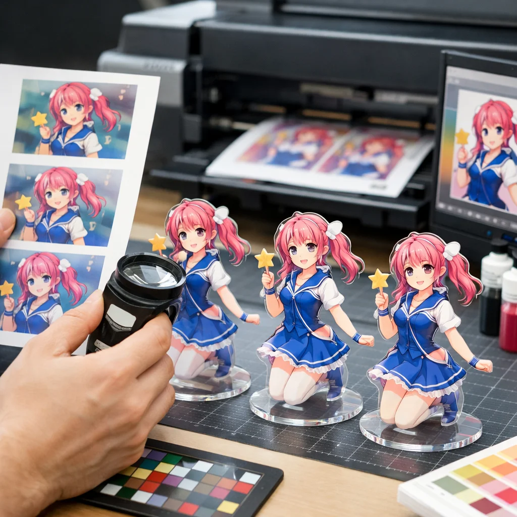 色味調整は「アクリルグッズ」の制作で重要です。入稿前から納品時まで、各フェーズでの具体的なチェックリストを使い、色味確認を行いましょう。この確認を怠ると、最終製品の品質に影響を及ぼします。