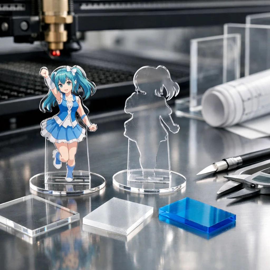 - 透明度/色味: アクリルグッズは基本的には透明ですが、色付きやマット仕上げもあります。見せ方に合わせて色味を選ぶことが大切です。