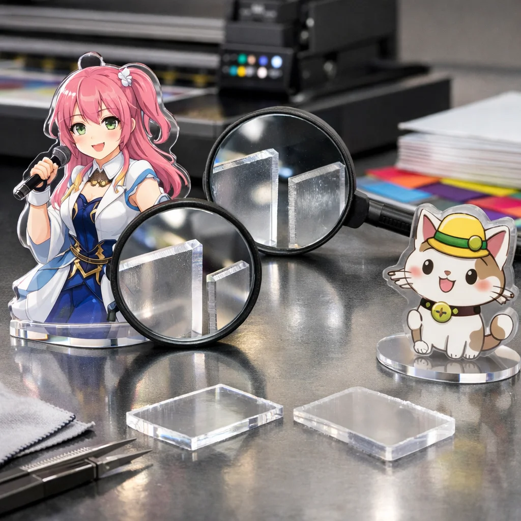 高品質なアクリルグッズは、見た目や触感、耐久性において一般的な製品と大きく異なる特長を持っています。ここでは、高品質のアクリルグッズを簡単に判別できる項目を詳しく解説し、特にユーザーが実際に手に取って確認できるポイントを優先して説明します。