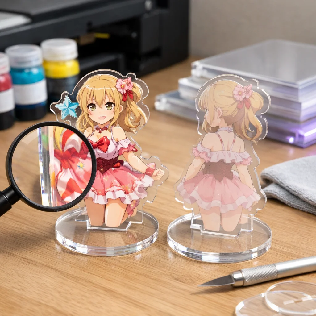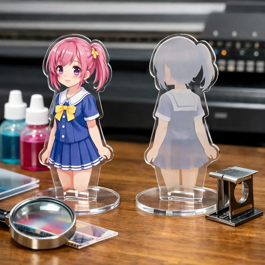アクリルグッズを制作する際、特に片面印刷を選ぶ場合には、いくつかの重要な注意点があります。これらの注意点は、失敗を防ぐための実務チェックとも言えるもので、入稿前の準備や校正、量産時に特に気を付けるべきポイントです。以下に、アクリルグッズの片面印刷に関する注意点を、なぜ起きるのか、そしてどう防ぐのかの順で解説します。