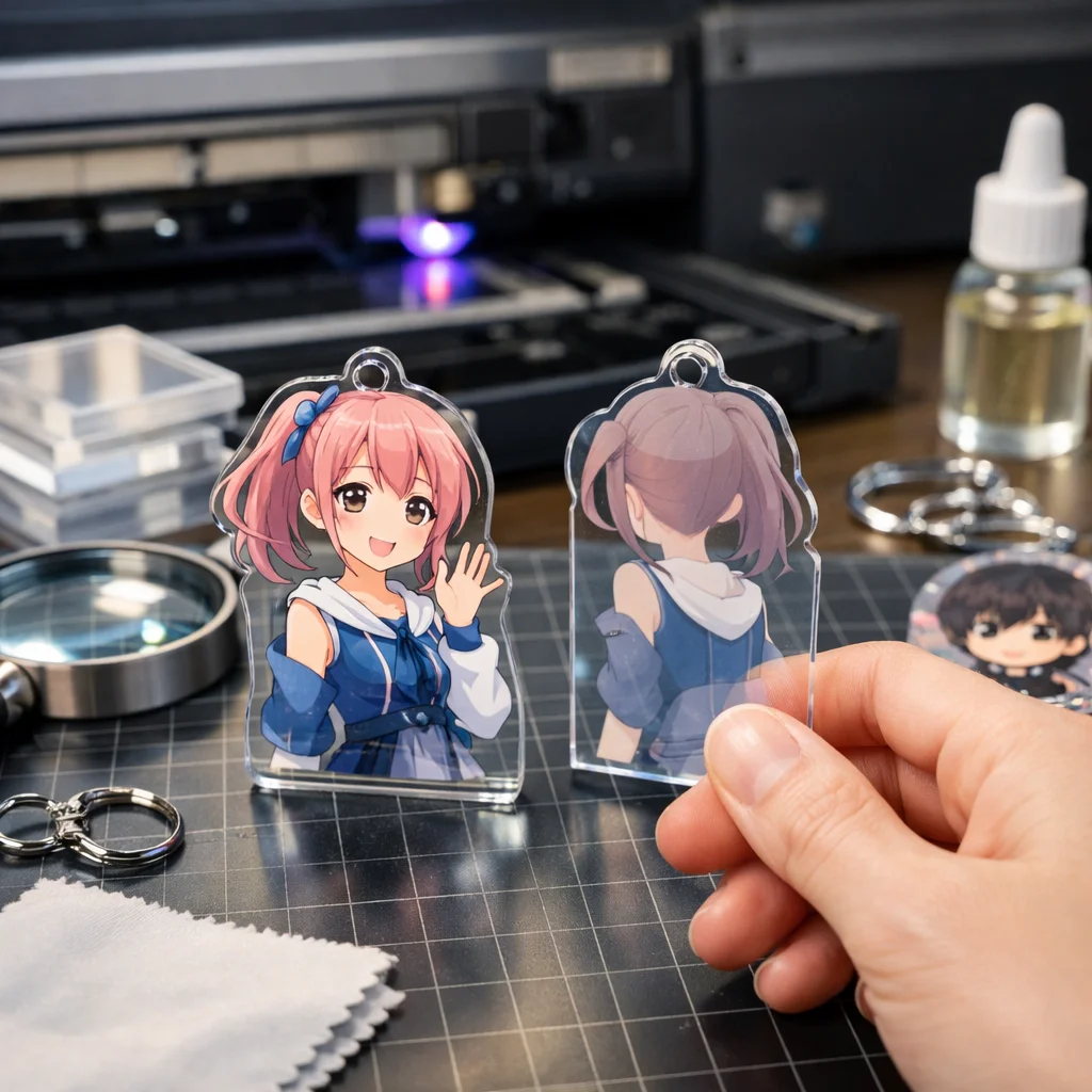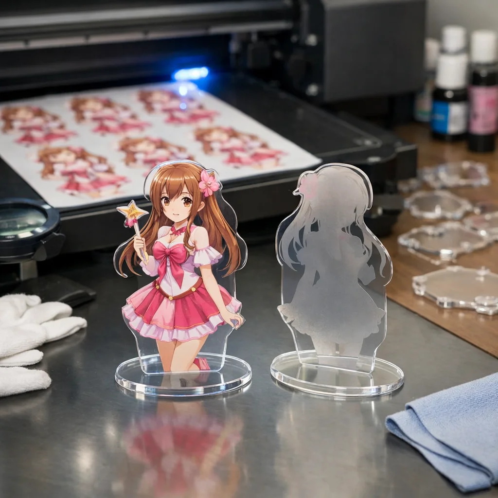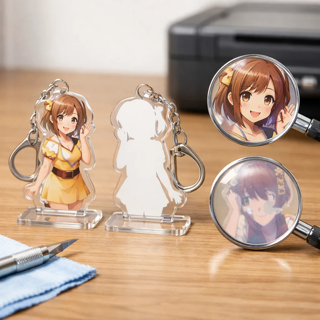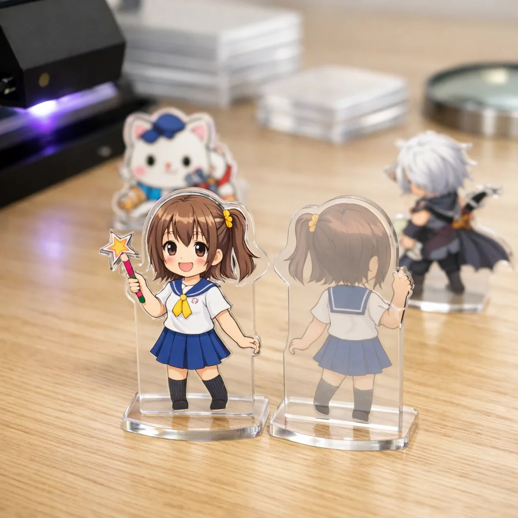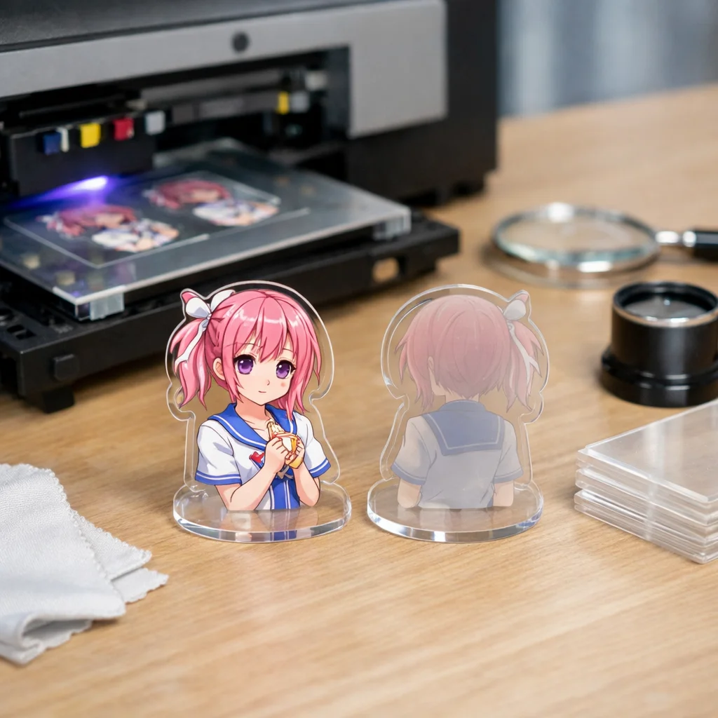次に、アクリルグッズにおける片面印刷の重要性について考えます。特に小ロット生産やイベント頒布、ノベルティグッズとしての制作において、以下のような役割を果たします。
