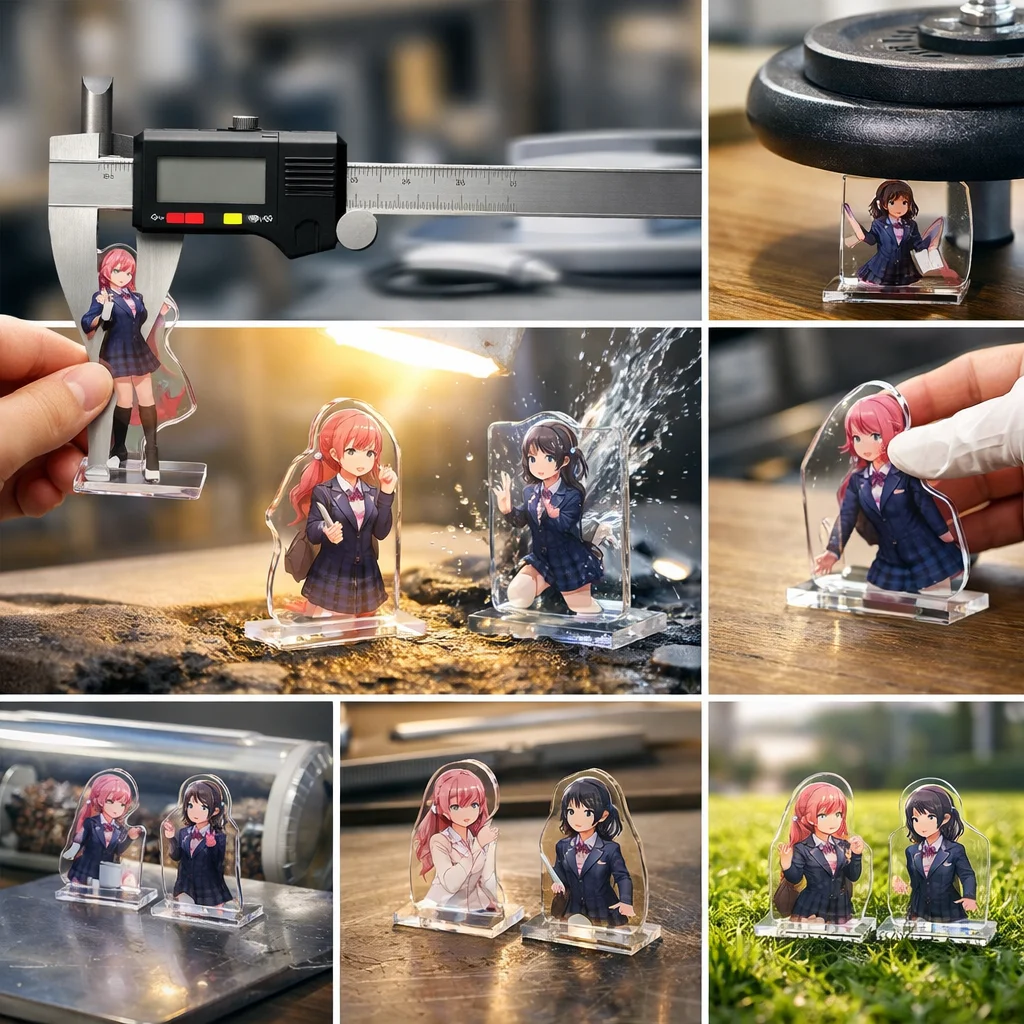 アクリルグッズは、その美しい透明性と軽量性から、多くの人々に愛されています。しかし、アクリルグッズの耐久性や適切な選択は、使用シーンや目的によって大きく異なります。本章では、アクリルグッズの技術的特性を比較し、使用目的別に最適な選択肢をご提案します。