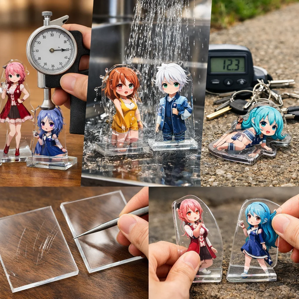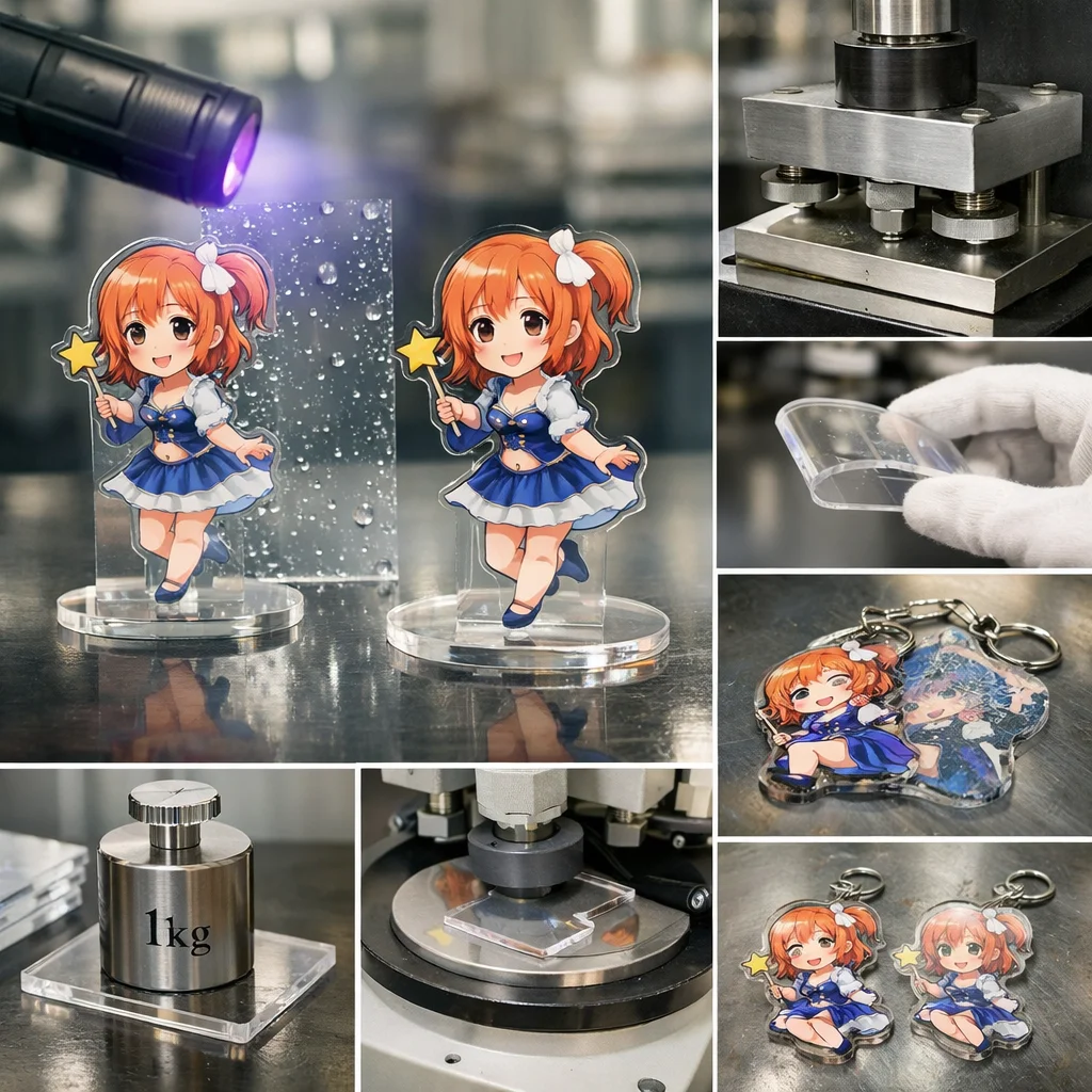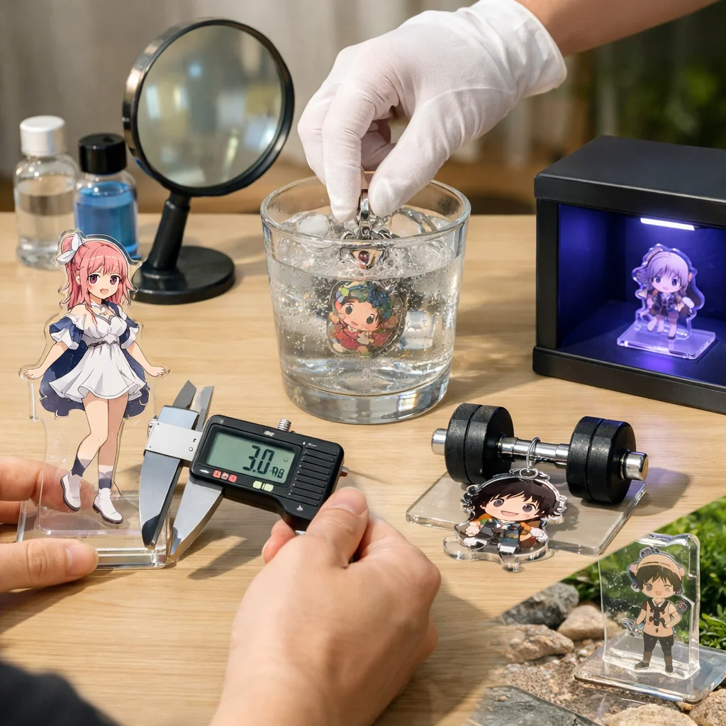 アクリルグッズの耐久性を評価する際、以下の6つの要素を考慮します: