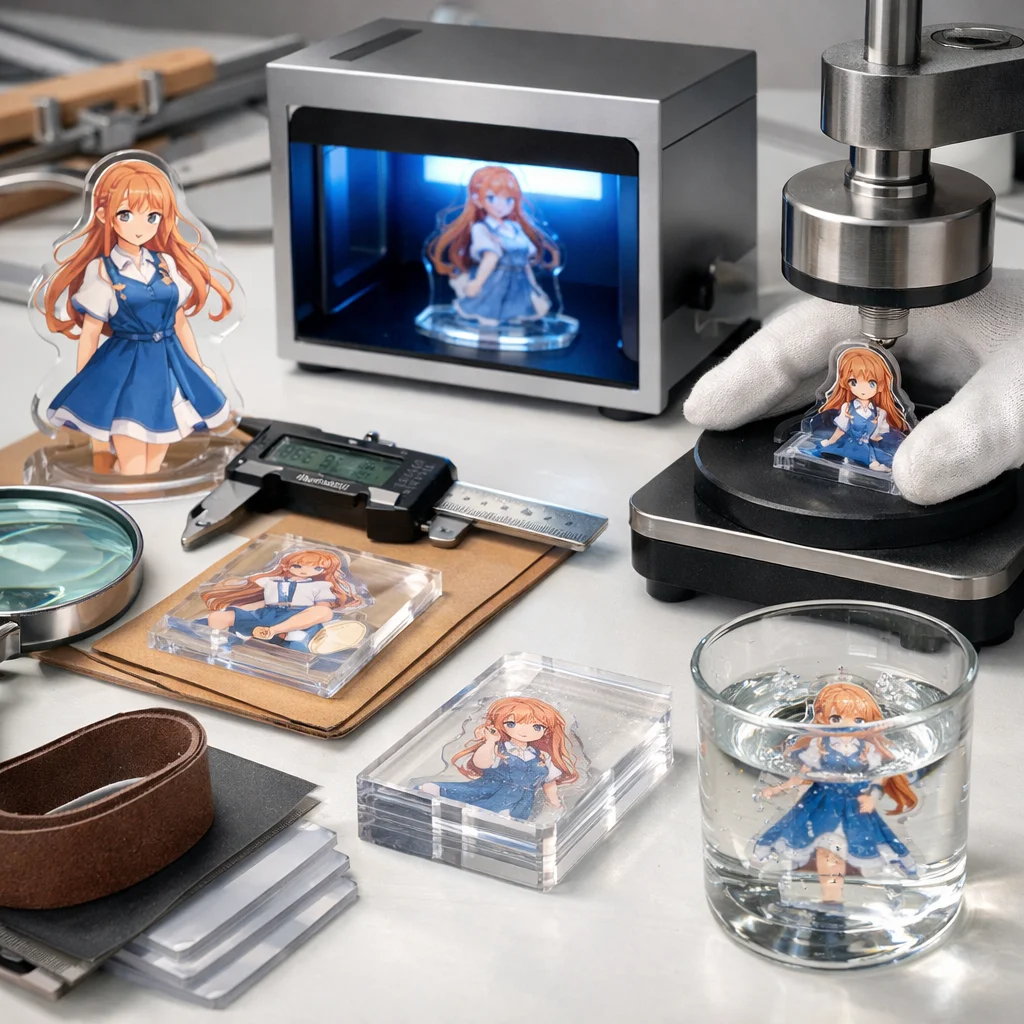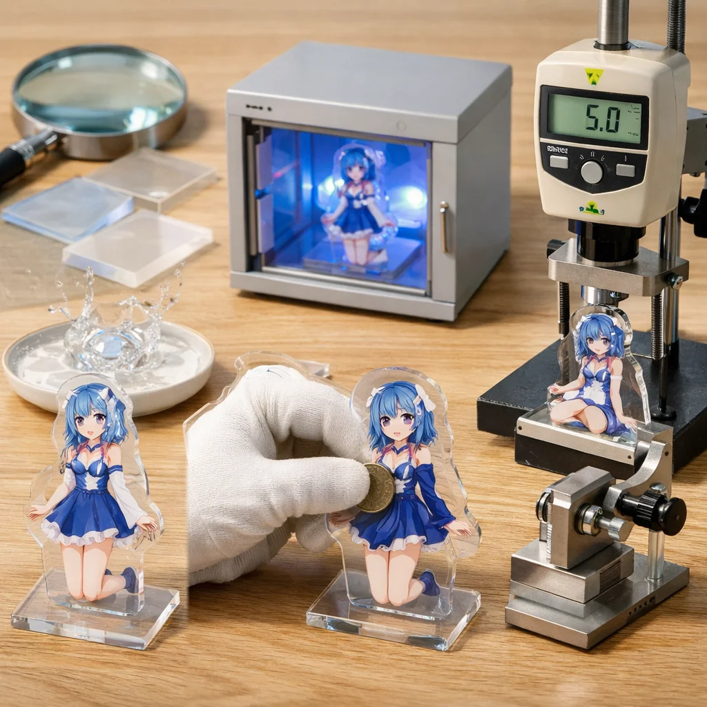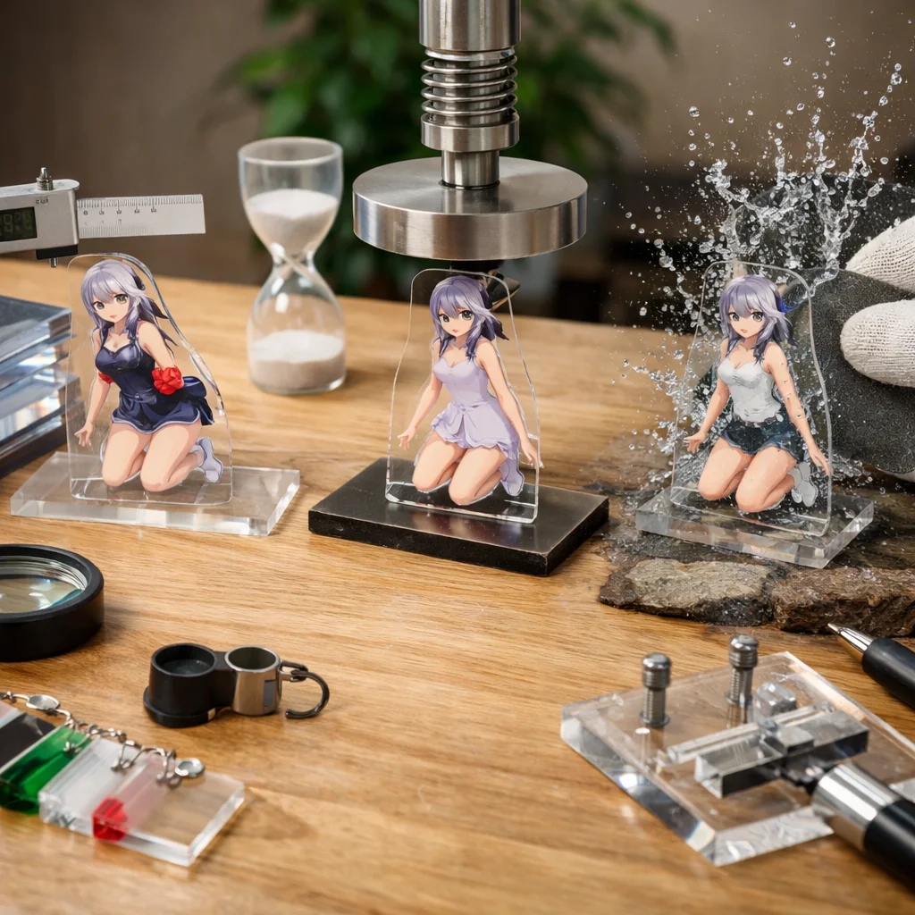 アクリルグッズの耐久性とは、割れ、傷、印刷、変色の各要素に基づき、使用環境や取り扱い方法によって変化する複合的な特性を指します。