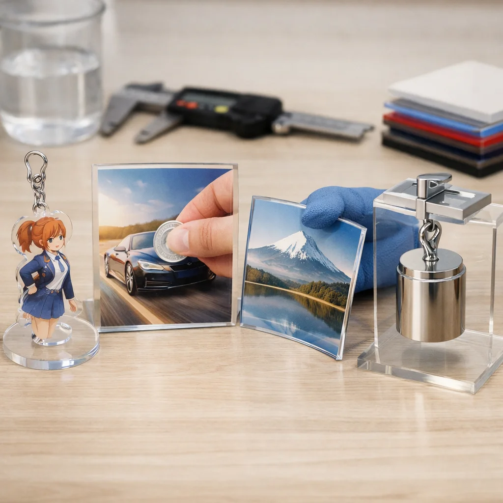 アクリルグッズの選択は、使用目的や環境に応じて耐久性や技術的特性を比較し、最適なものを選ぶことが重要です。持ち歩き用、室内展示用、プレゼント用、店舗掲示用など、目的に応じて適切なアクリルグッズを選び、長く愛用できるアイテムを手に入れましょう。