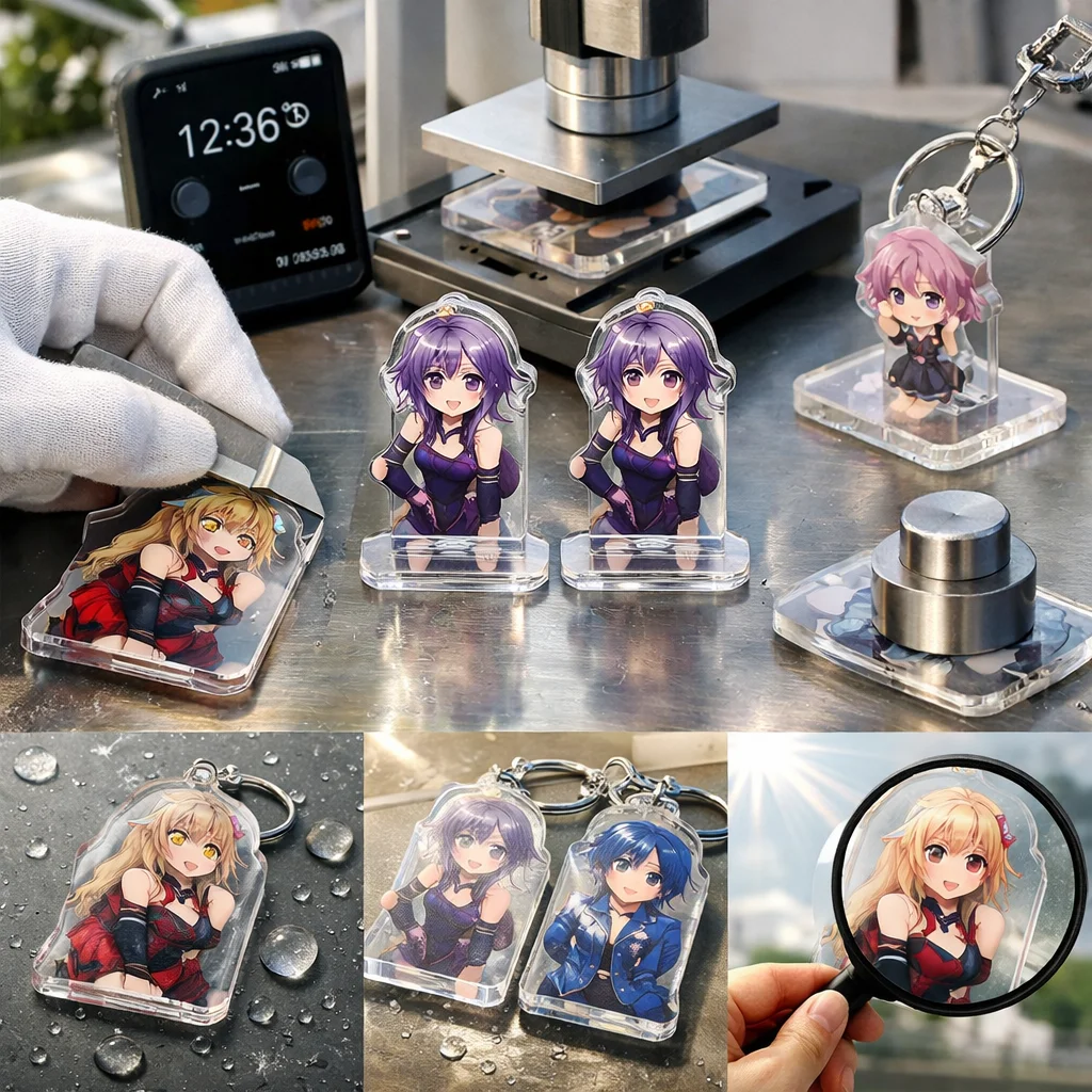 - 金具の着脱性:多機能なアクリルグッズでは、金具部分が取り外し可能であることが多いです。これにより、必要に応じて部品の交換が容易になり、全体の耐久性を向上させています。