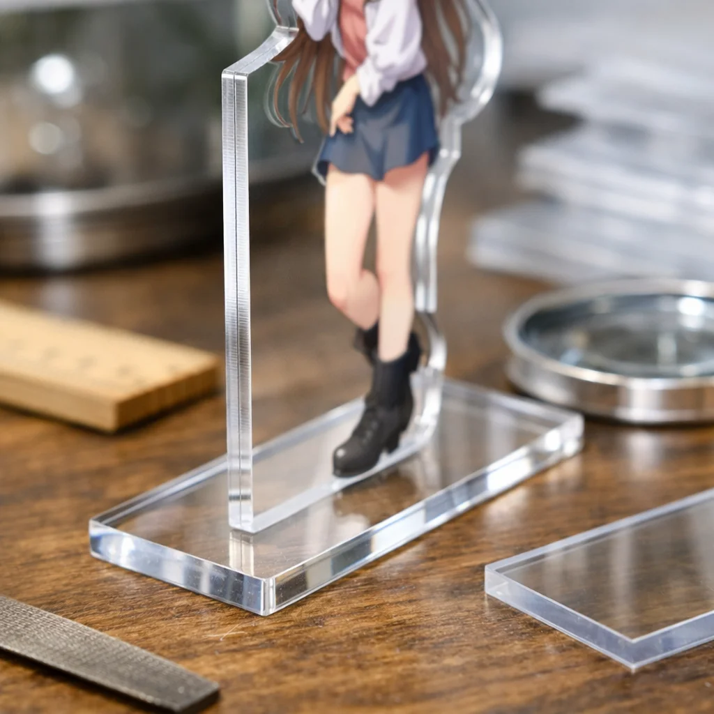 5mmアクリルのデメリットを考慮し、PETやPCなどの他の素材も検討することが重要です。透明性、耐衝撃性、耐薬品性、傷つきやすさ、コストを評価し、持ち歩き頻度や落下リスクに応じて適切な素材を選ぶことで、より良いアクリルグッズの製作が可能になります。